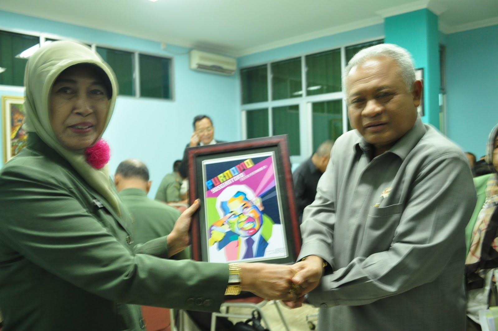 Dalam kesempatan ramah tamah bidang studi DKV memberikan kenang-kenangan untuk bapak Menteri Pertahanan Purnomo Yusgiantoro berupa karya visual dari dosen DKV melalui ibu dekan FTSP.
